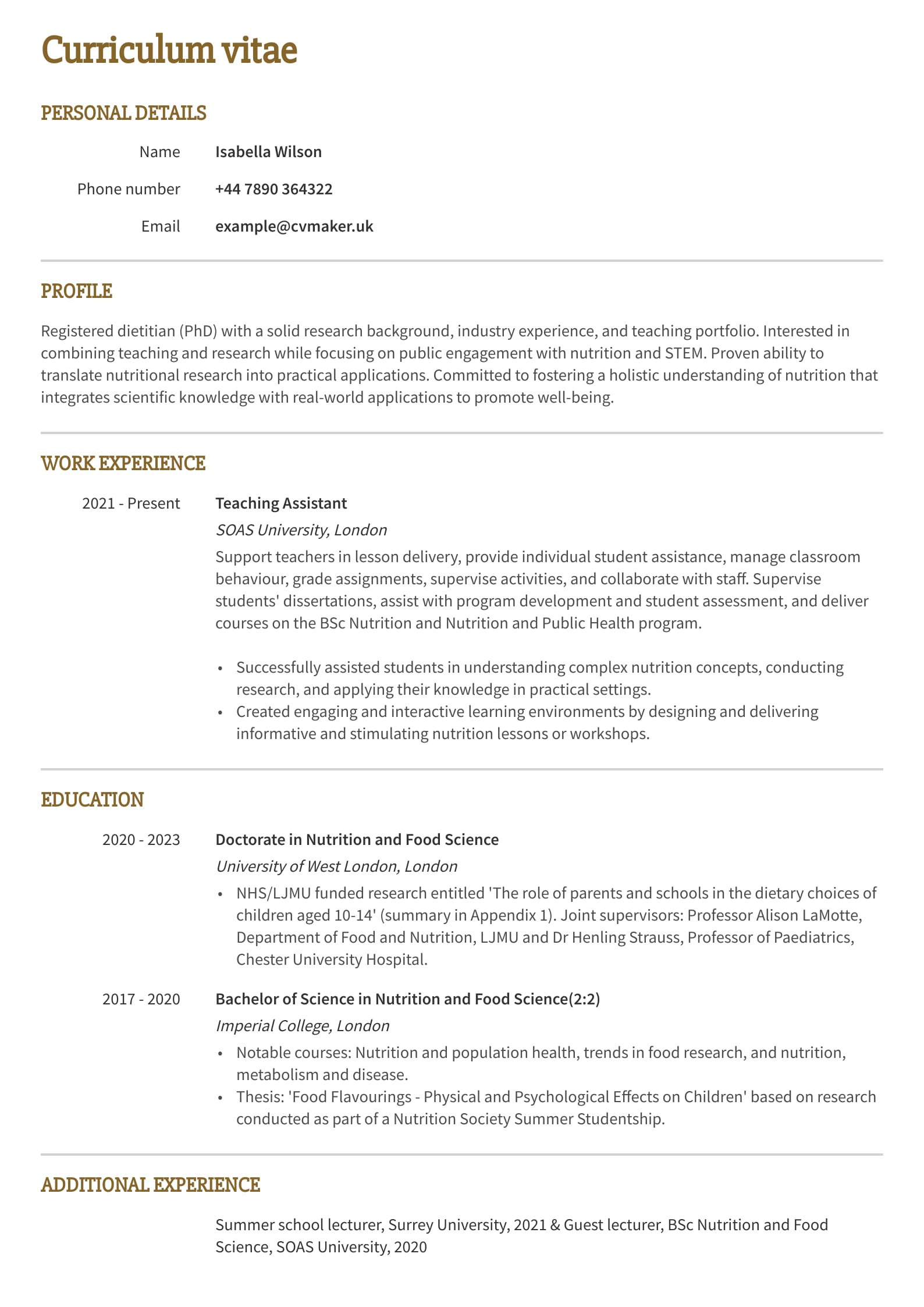 For inspiration, refer to CVMaker's collection of CV examples to help you get started. Additionally, we designed easy-to-read CV templates to improve your job prospects.