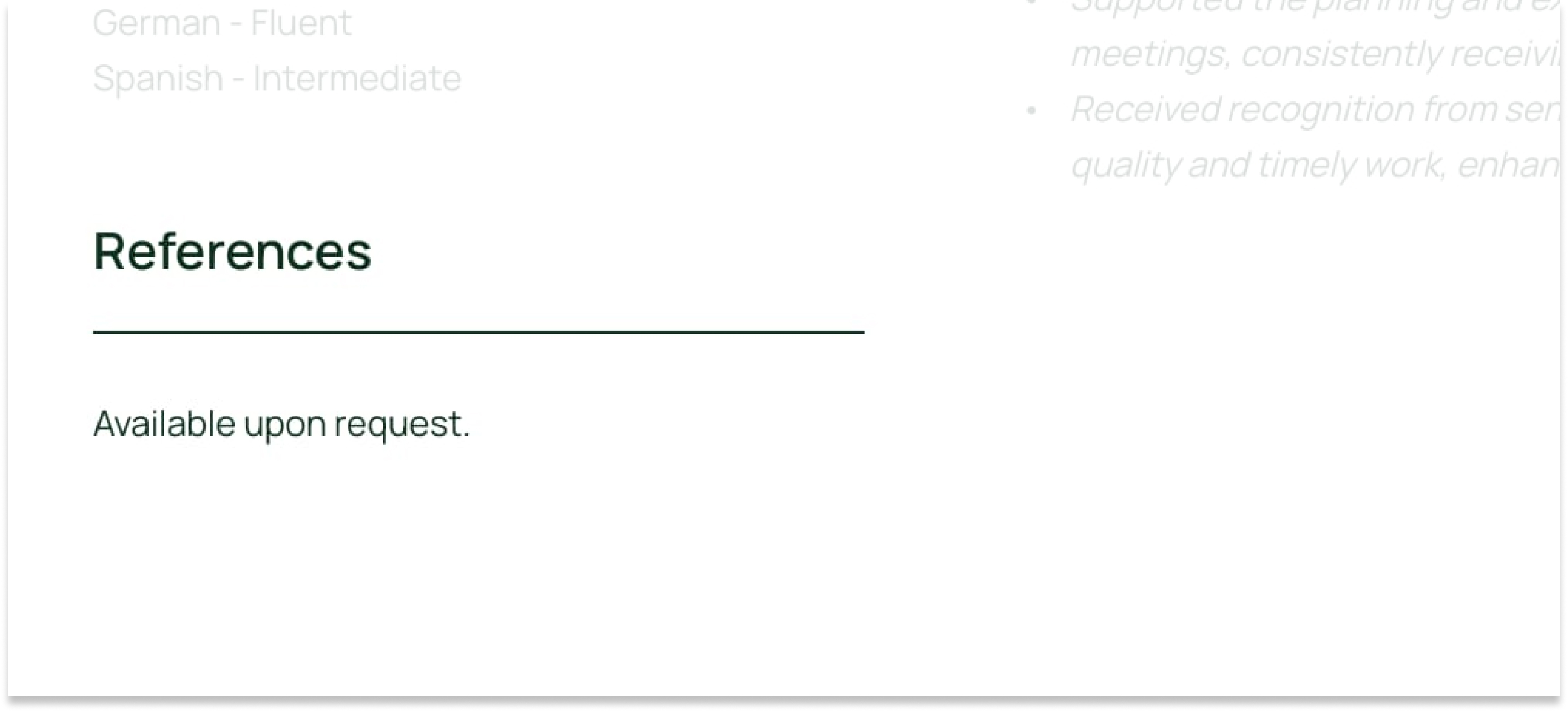 Whether you should include references depends on the job itself. If a company clearly states that you must add references to your CV, you do not have a choice. However, if they do not request this, it could be better to leave them out. Recruiters prefer a simple CV of no more than two pages, so you have to be efficient with space. Instead, it would be more advantageous to use it in the later stages of the application process. Listing references is most helpful if you lack work experience and want to fill in the blank spaces on your CV.