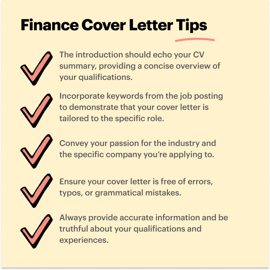 What should be included in a finance cover letter?