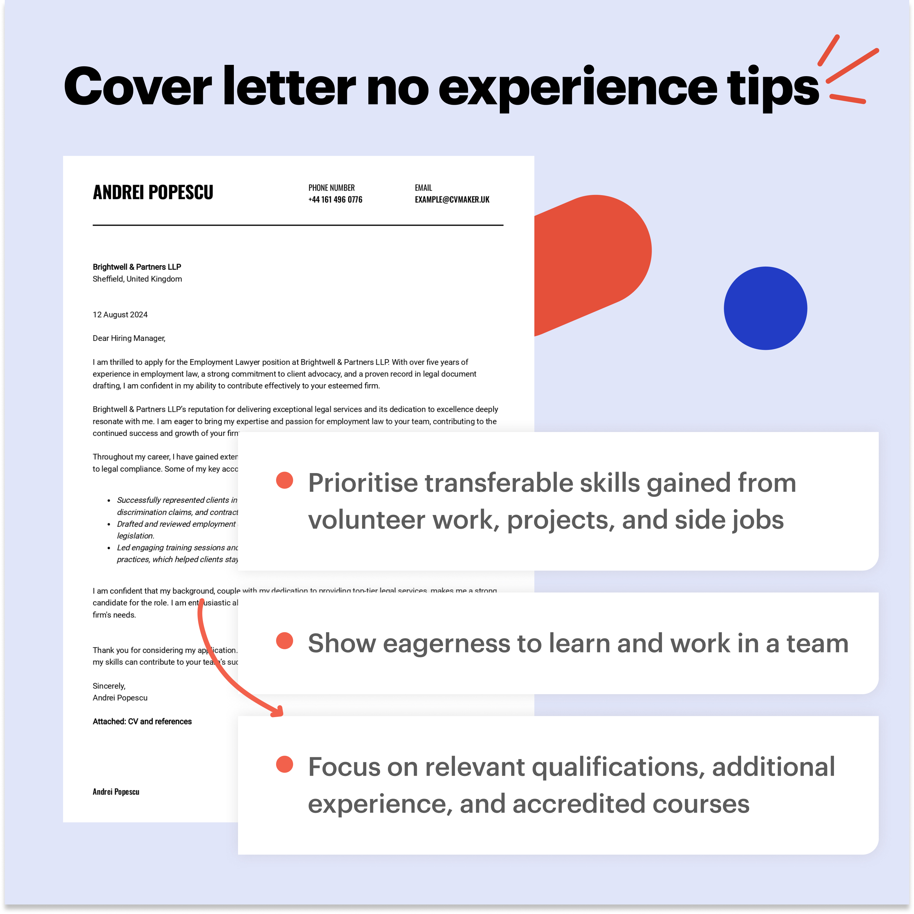 See our blog article on how to write a cover letter with no experience for more expert tips and examples to help get you started.