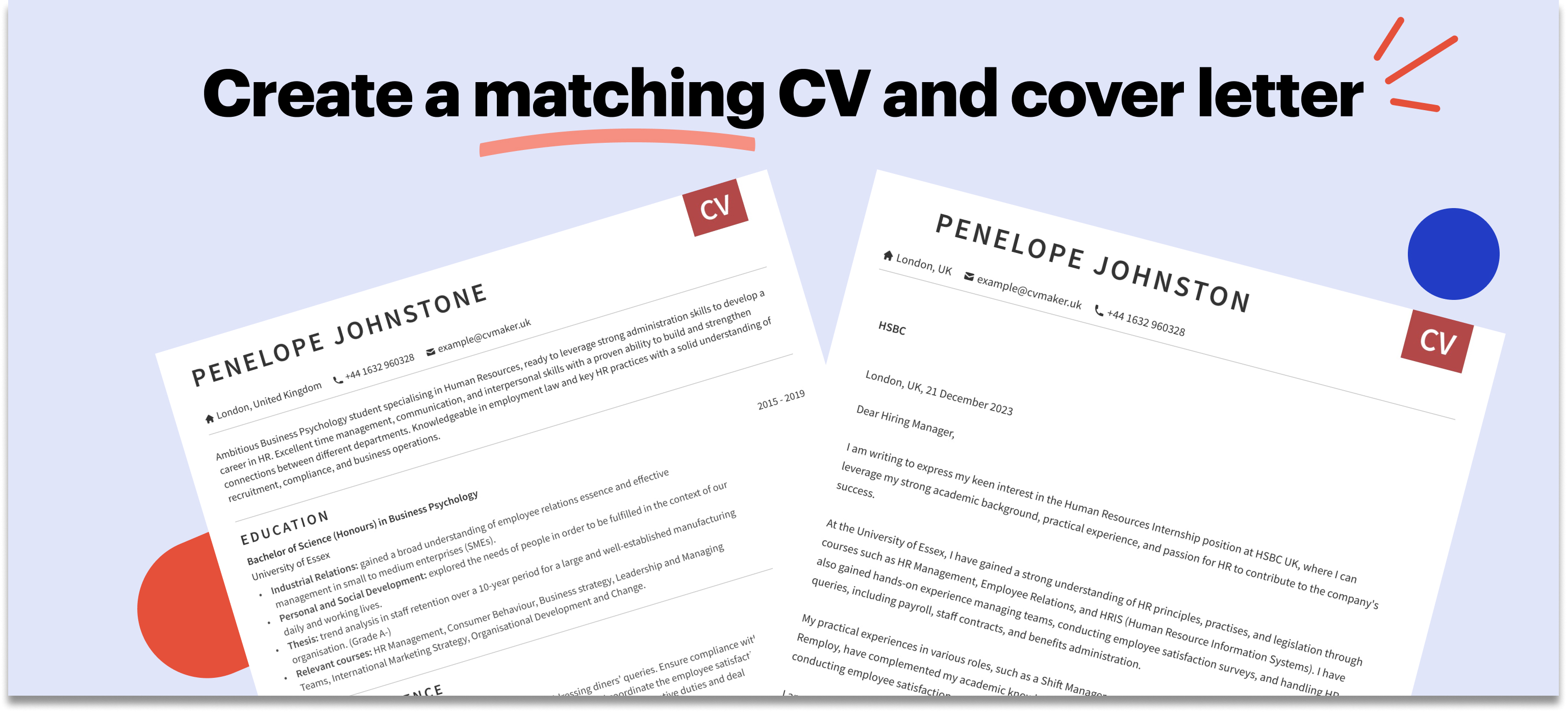 Enhance your professional career documents with CVMaker, the ultimate CV and cover letter builder with professional CV templates that can be tailored to your needs.