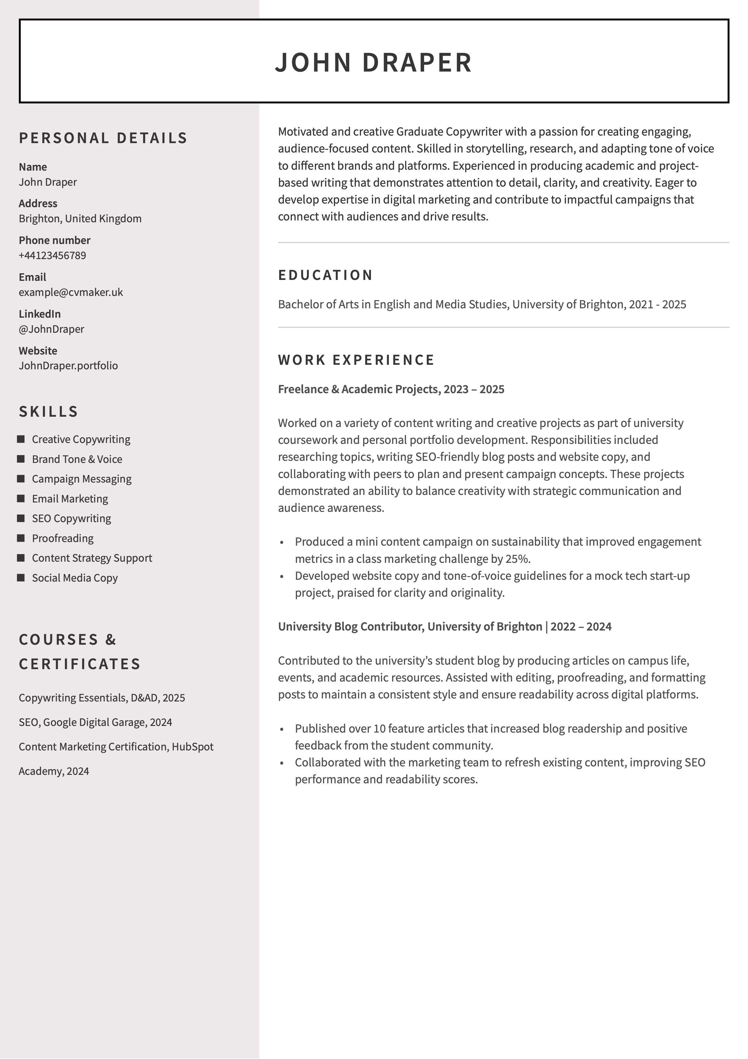 Copywriter CV example