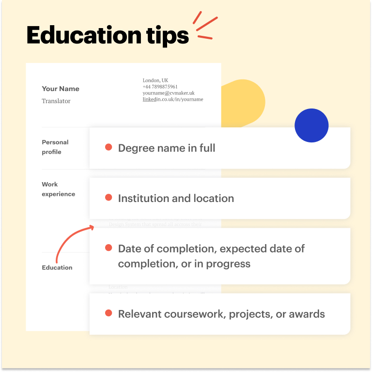 UK employers seek strong qualifications and relevant experience coupled with several language proficiencies, and specialised training in a specific branch of translation. You could also include a portfolio showcasing translation skills, accuracy, and cultural understanding is essential. Lastly, add certifications, career accomplishments, or references to help you stand out from a pool of applicants.